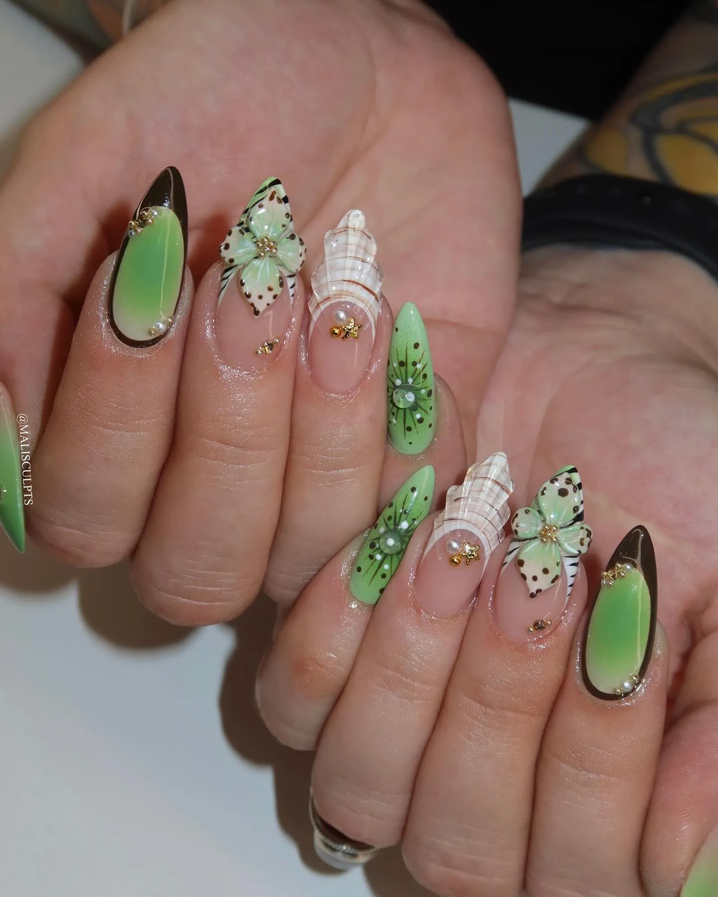 31. Glossy Green Tips with 3D Art